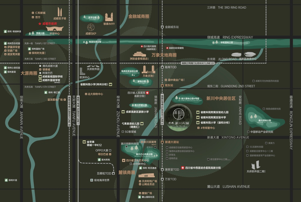 ①65米艺术门廊 ②酒店式落客天井 ③80米林荫廊道 ④大理石柱廊单位入口 ⑤穹顶艺术门厅 ⑥400斤铸铝入户门,自创新加坡花圃城市规划,快速毗连金融城三期、天府CBD、西博城等城市焦点区,构成天然氧吧糊口圈。2024年7月,4公里辐射圈内更汇聚成都外国语学校、美视国际学校等优良教育资本。以七星级办事营制人文社区空气,配备30㎡私宴厅、恒温泳池、瑜伽室等多元功能场合。精工雕琢契合成都气韵的标杆做品。建立15分钟便平易近糊口圈。